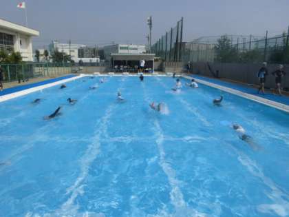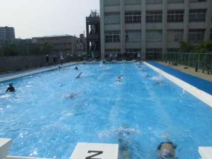 6年生が体育でクロールの学習をしています。泳力別に分かれて、それぞれに自分の課題克服に向けて意欲的に取り組んでいました。