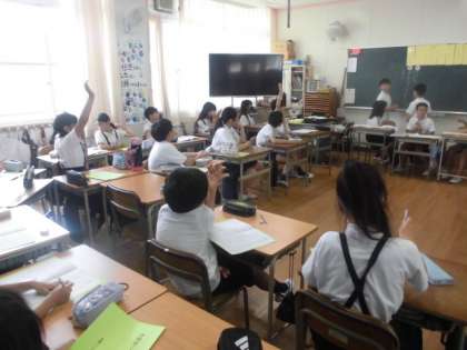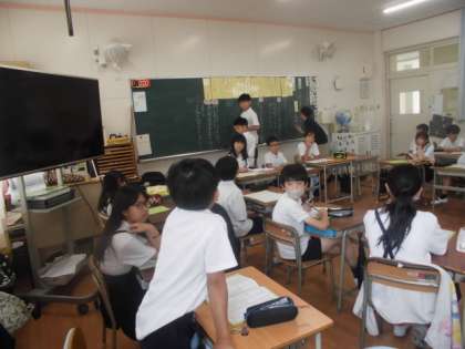 5年生が、1学期最後のお楽しみ会の計画を立てました。みんなで思い出が残るようにということで意見を出し合っていました。友だちの意見を聞きながらしっかり考えていました。