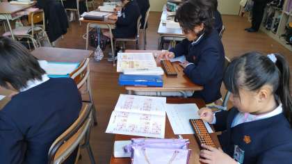 今日は、3年生で、外部講師をお招きしてそろばんの学習をしました。