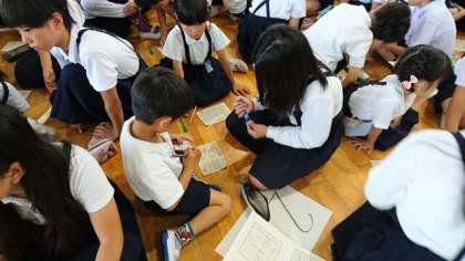 1年生の児童は、6年生に迎えに来てもらい、嬉しそうに参加していました。