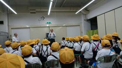 局長さんのお話を聞いて、クラス毎に見学させてもらいます。