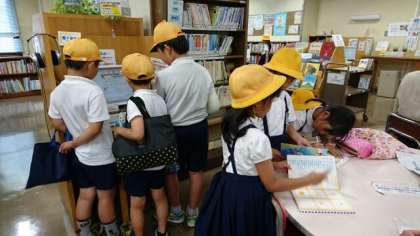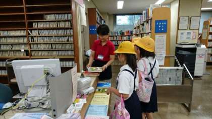借りる本が決まったら、貸出しの用紙に名前を記入し、カウンターに持っていきます。今日は特別に、学校まで届けてくださいます。