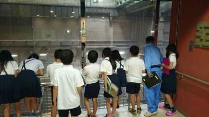 6月16日に4年生が、舞洲焼却工場に行ってきました。まずは、中央制御室とゴミピットを見学しました。みんなとても熱心にメモを取っていました。