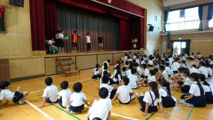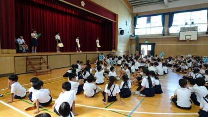 次に「声当てクイズ」をしました。先生方の声を、班で相談して、見事に言い当てていました。