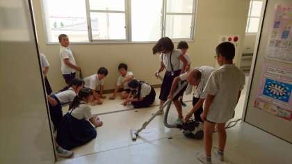 5時間目に、全校一斉に大掃除をしました。1学期間の汚れを、みんなで協力して、一生懸命落としました。