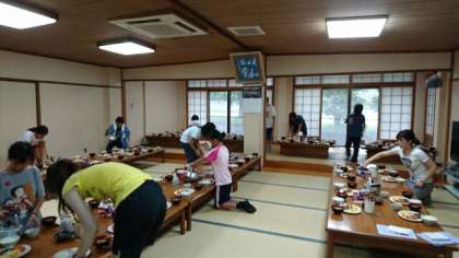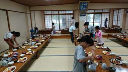 18時から夕食です。食事係さんが、準備をしてくれています。