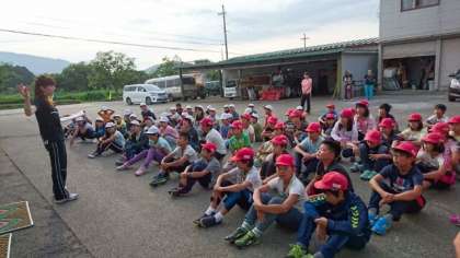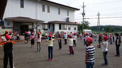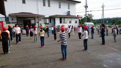 2日目です。おはようございます。朝会の後、ラジオ体操をしました。みんな元気です。