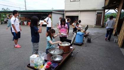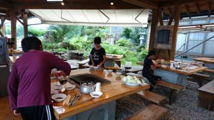 午後6時から、夕食です。食事係さんが準備をしてくれています。