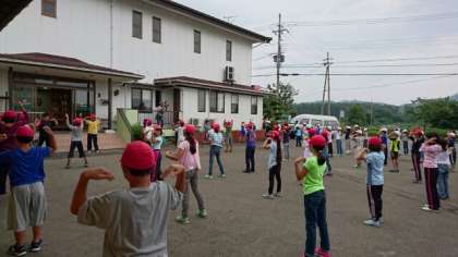 おはようございます。 朝の会とラジオ体操の様子です。いよいよ最後の日の活動です。お天気は曇りです。