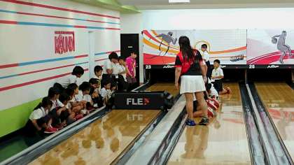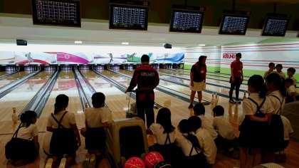 まず、ボウリング場では、ボウリング場で働く方の仕事について説明をしてもらい、見学をしました。
