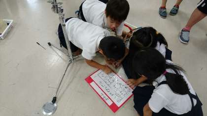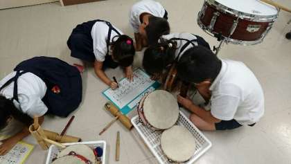 リズムに合った楽器を選んで曲に合わせて演奏します。
