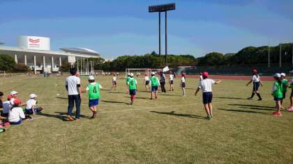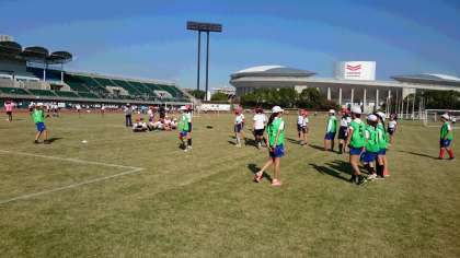 芝生のグラウンドでサッカーもがんばりました。