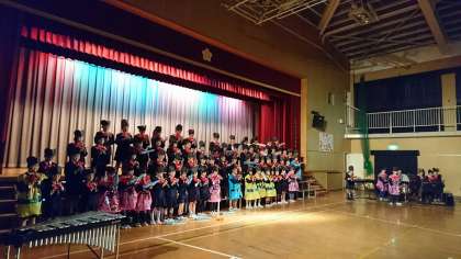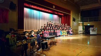 今日は、土曜授業で行う学習発表会のリハーサルです。