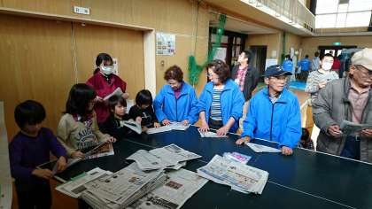 新聞紙を使って、簡易のトイレや食器を作る実習もありました。
