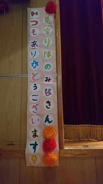 見まもり隊の方々へ、日ごろの感謝の思いを込めて、児童会主催の「ありがとう集会」を行いました。