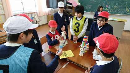 「コップつみくずし」 制限時間内に、コップを積んで、くずします。