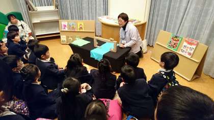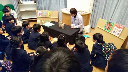 最後に「組み木絵本」で、「三びきのやぎのがらがらどん」のお話をしていただきました。