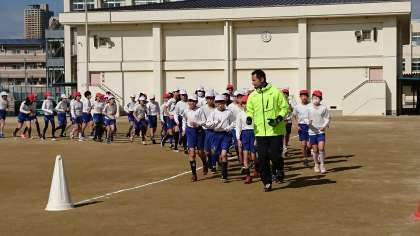 3時間目は、6年生が指導を受けました。走り幅跳びでは、助走がとても大切です。ベストタイムは、50mを5秒ほどで走られるそうです。走り方の大切なポイントなどをていねいに教えてくださいました。