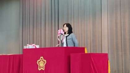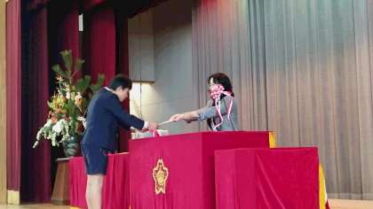 校長先生のお話を聞いたあと、5年生の代表が校長先生から通知表をもらいました。