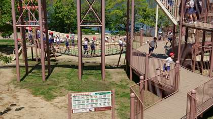 お弁当タイムの後は、アスレチックで遊んでいます。
