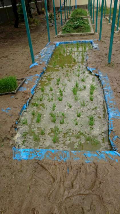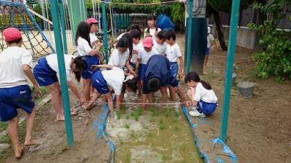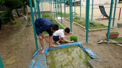2組の次は1組が植えました。最後は、中学生が仕上げをやってくれました。