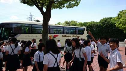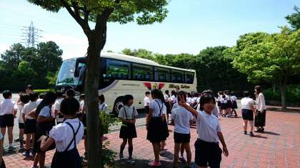 バスで工場見学をしました。いいお天気です。