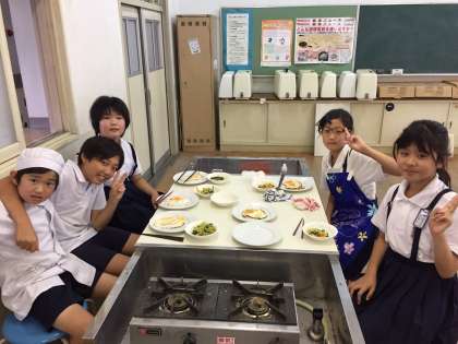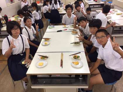 6年生が「ゆで野菜のポン酢あえとたまご料理」の実習をしました。