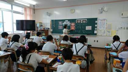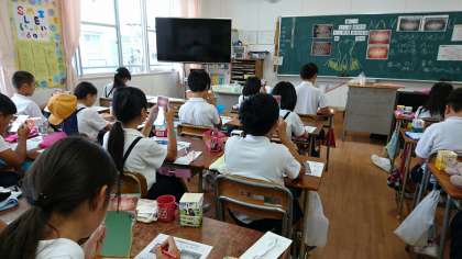 毎年6年生で「歯と口の健康教室」を行っています。歯周病について教えていただき、自分の歯茎の様子をよく観察しました。