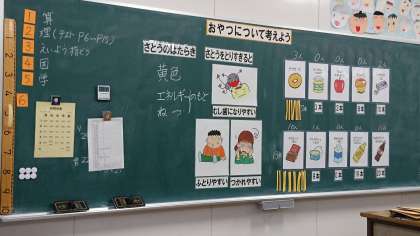 1日に必要な砂糖は、20グラムです。それを大きく越えないようなおやつのとりかたについて考えました。飲み物との組み合わせ方も大切だということがわかりました。