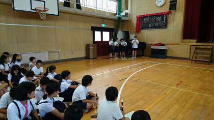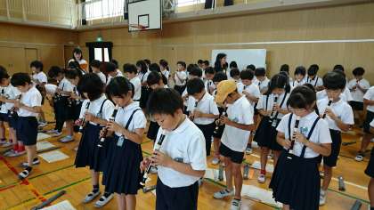 ソロの部分にチャレンジしている高学年の演奏を聴き、そのあと、みんなで合わせて演奏しました。