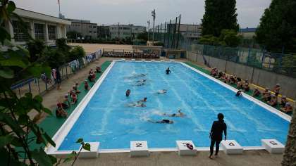 今日から、プール指導が始まりました。管理作業員さんが何日もかけて清掃してくれ、教職員で準備し、きれいになったプールに最初に入れたのは、5年生です。