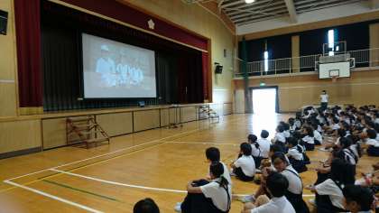 代表委員の人たちが作ったビデオを、児童朝会の後に、みんなで見ました。