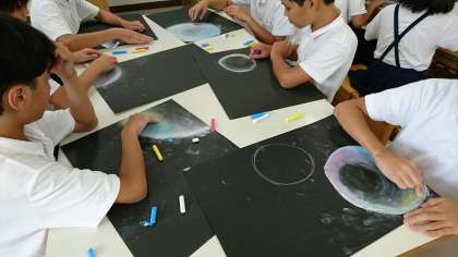 「チョークでシャボン玉」
