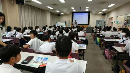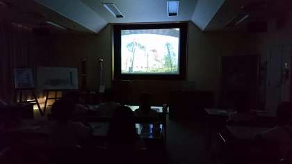 先ずは、ビデオを見せてもらい、舞洲工場が、環境に優しい緑の多い建物であること、この建物のデザインの特徴などについて教えていただきました。