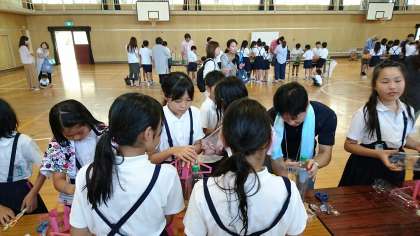 5年生は「ペットボトルロケット飛ばそう」でした。地域の方に教えていただいて、6月から作っていたペットボトルロケットを、今日、仕上げます。