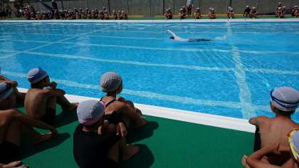 まず最初は、クロールで50メートル泳いでくださいました。きれいな泳ぎでした。