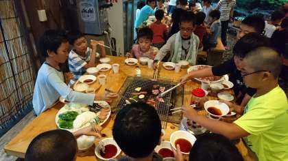 夕食のバーベキューです。夕方から、激しく雨が降ってきました。