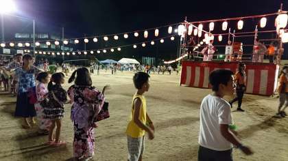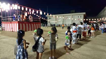 始業式での練習の甲斐あって、たくさんの児童が盆踊りを楽しむことができました。