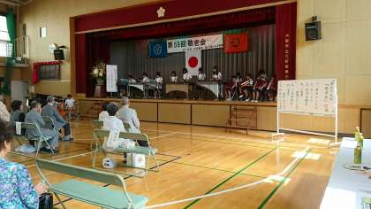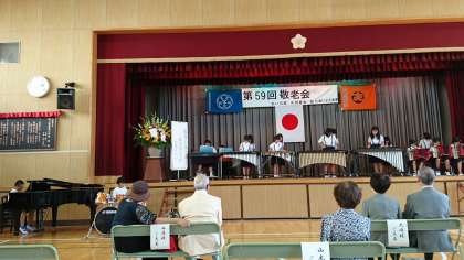 音楽クラブの子どもたちがお祝いに「小さな恋のうた」を演奏しました。