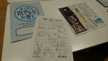 災害時、食器が壊れてしまった時、チラシで作れる紙皿の折り方を教えていただきました。