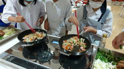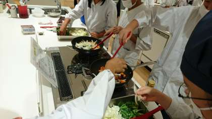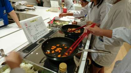 いよいよ野菜炒めです。火の通りにくいものから順に炒めていきます。