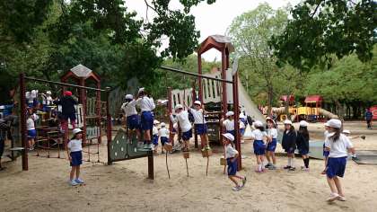 遊具で元気に遊んでいます。