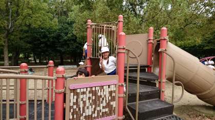 遊具で元気に遊んでいます。