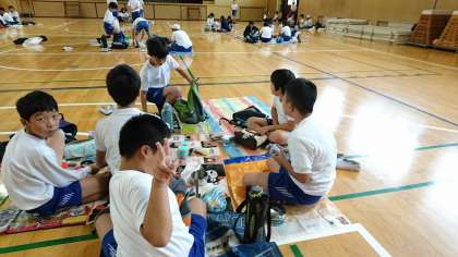 遠足に行けなかったので、学年で、体育館でお弁当を食べました。昼休みは、体育館で遊びます。