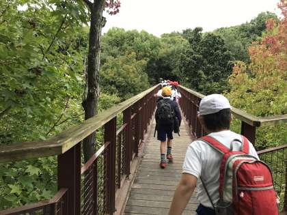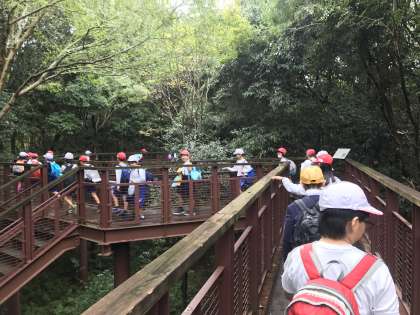 昆虫館の後は、森の中を観察しました。空中を歩けるように道ができていて、森を上から観察することができました。