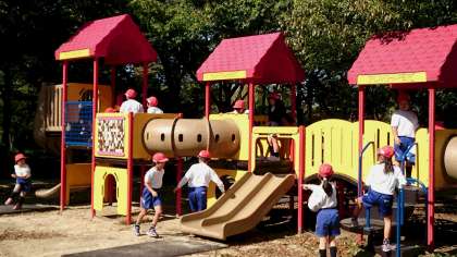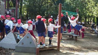 さっそく、遊具で遊びます。色々な遊具があって元気いっぱいに遊び始めました。