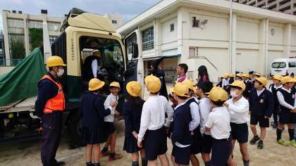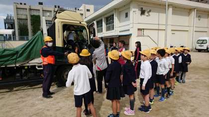 また、実際にトラックの運転席に乗せてもらい、運転手さんの見え具合を体験させてもらいました。