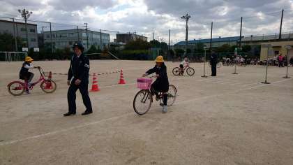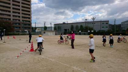 3時間目は、3、4年生が、正しい自転車の乗り方について学びました。