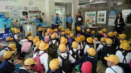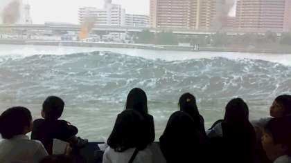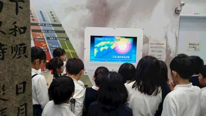 津波災害体感シアターでは、迫力のある映像を見て津波の恐ろしさを知り、避難の仕方を学びました。