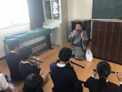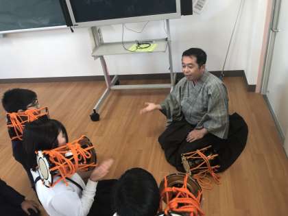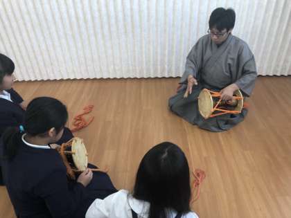 笛、小鼓、大鼓、太鼓を実際にさわらせてもらいました。